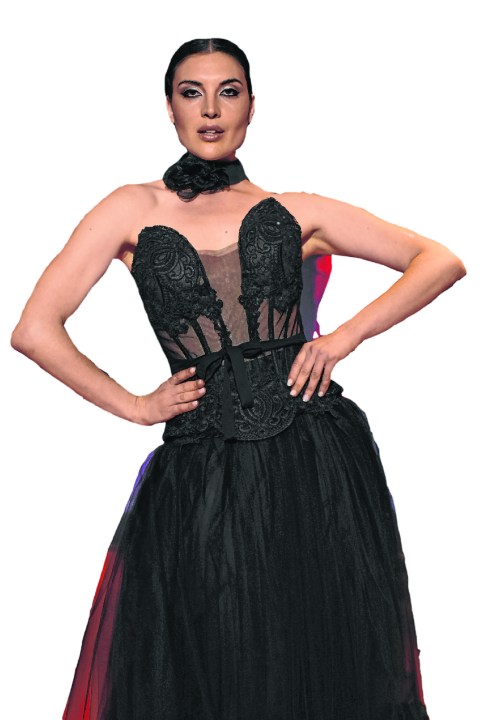 Al hacer foco en la colección, detalló: “Hicimos una pasada muy amplia de color negro en transparencias, en pétalos, en encajes, con líneas muy innovadoras, pero también una colección usable, con dos piezas por pasada. Una colección que puede hacerse versátil en cualquier otro momento, usándose por separado con prendas más urbanas”.