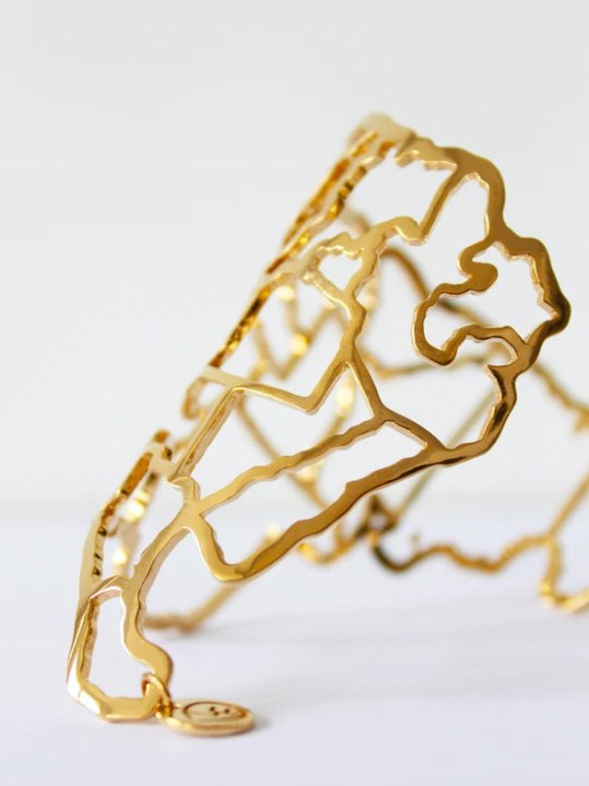Fue Máxima quien eligió la joya de auténtica colección «Mi Lugar en el Mundo». Este brazalete de oro reproducen la silueta de distintos países y en el caso de Máxima, fue de Argentina.
