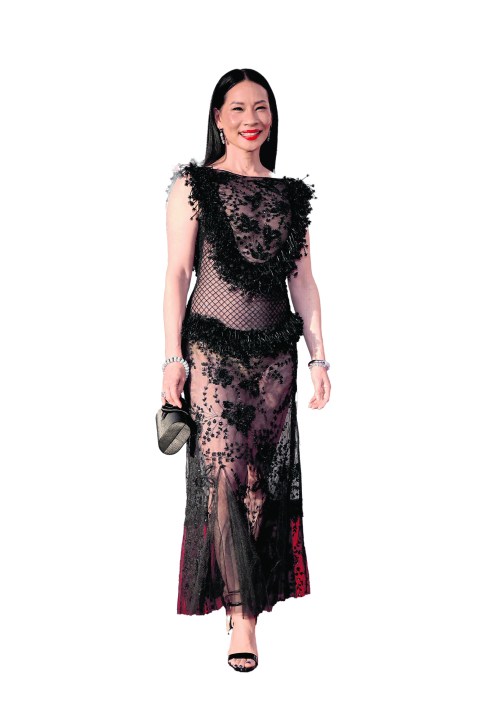 Con transparencias y un traje lencero, la enigmática Lucy Liu puso un pie firme en la red carpet. Apostó por un vestido de Georges Hobeika con bordados de pedrería, tejido red y flecos, en un equilibrio preciso entre sensualidad y sofisticación.
