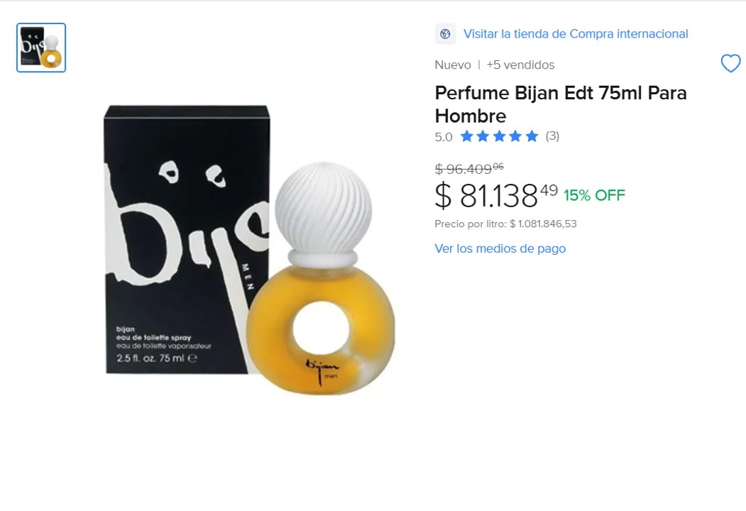 En un popular sitio de ventas, la fragancia está valorada en aproximadamente 96 mil pesos pero actualmente rebajada en $81138 pesos.