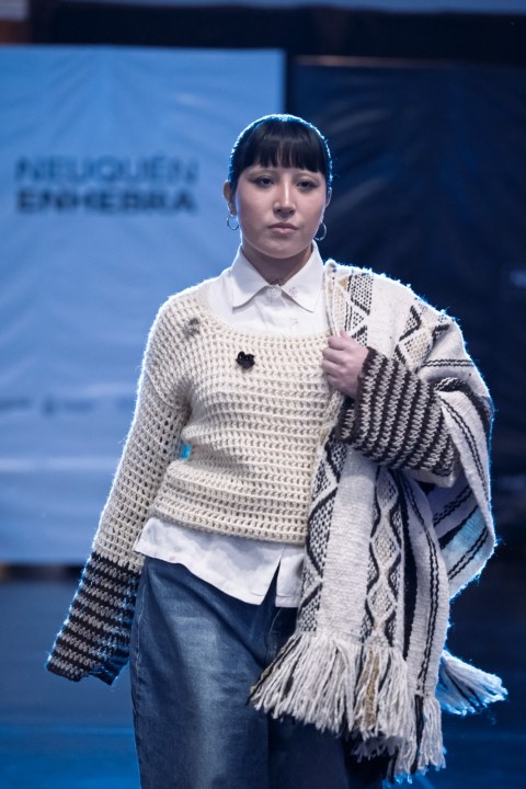 En cuanto a las propuestas, en la pasarela se vieron sweaters, ponchos y ruanas en colores en tonos crudos y gamas de marrones.