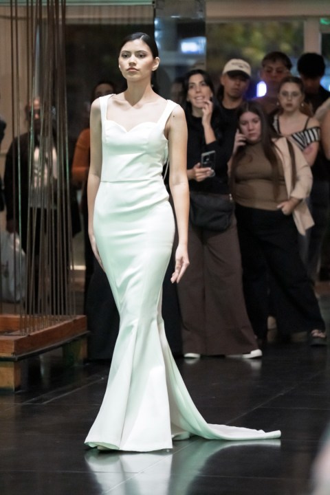 El cierre estuvo a cargo de estudiantes de tercer año de Piazza, quienes llevaron a la pasarela una serie de vestidos de novia que exploraron tanto lo clásico como lo contemporáneo. Predominaron los cortes sirena y el estilo román-tico, con presencia de bordados, volados y encajes.