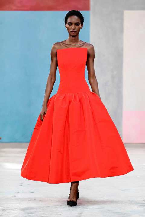 Entre camisas blancas, rojo intenso y calas como leimotiv, Wes Gordon propone una colección Otoño/Invierno 2026 de líneas definidas y feminidad contemporánea.