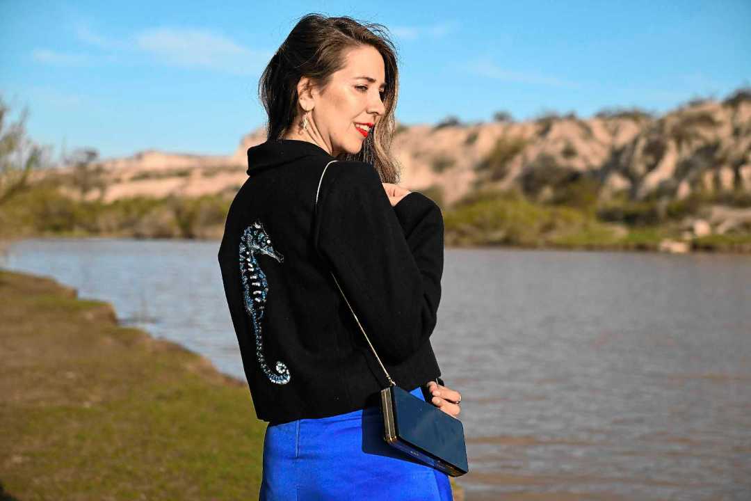 Cada puntada en su taller tiene una intención: las costuras están hechas en máquina recta y overlock, pero los detalles finales -bordados, botones antiguos, terminaciones a mano- llevan ese tiempo que solo el oficio sabe respetar. “Soy apasionada de los detalles. Tengo una gran colección de botones antiguos que atesoro tanto como mis tijeras”, confiesa entre risas.