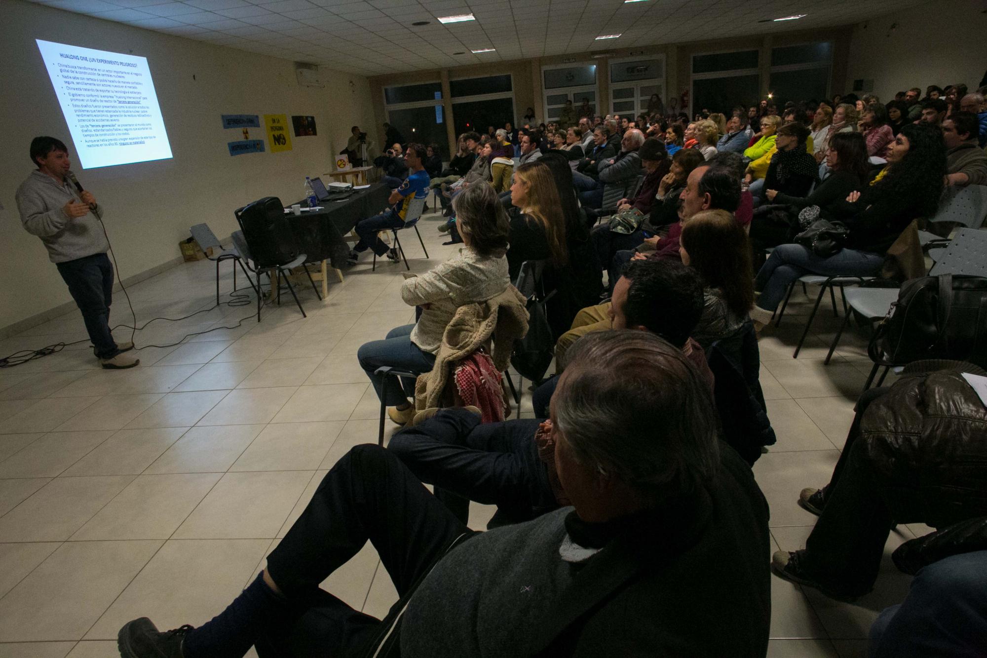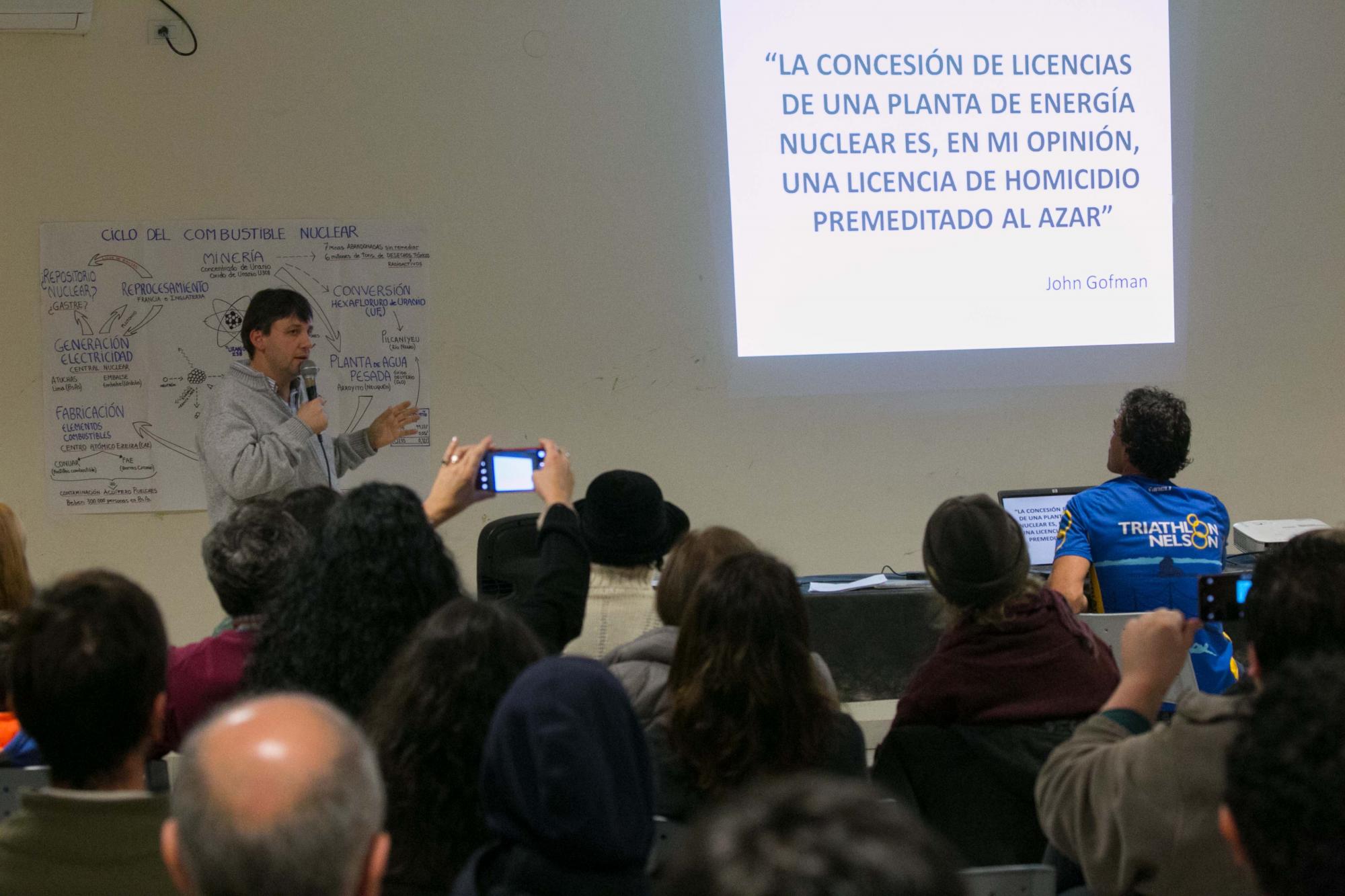 Su exposición -que congregó de 250 a 300 personas en el salón de Sitrajur- reiteró los altos riesgos de las centrales nucleares, insistiendo que siempre existen los efectos radiactivos y no hay ningún tratamiento definitivo de los residuos. “Lo único que existe son guardas provisorias”, insistió.