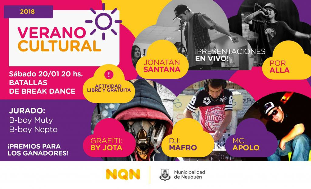 Parque del Oeste: Hoy, desde las 20, habrá arte urbano, demostraciones de break dance, Dj Mafro, Por allá, Graffitti by Jota, Dance Machine, Jurado Nepto y Jurado Muty. Mañana estará dedicado enteramente a los chicos y a la familia con espectáculos de títeres y la tropical Guilly y su banda.