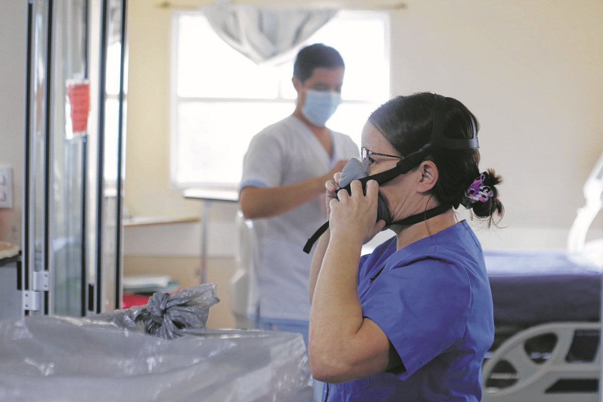 En sala de internación de moderados, tenían 16 pacientes con coronavirus, el 100% con requerimiento de oxígeno en sus distintas variantes (máscara, máscara con reservorio o dispositivo Helmet).