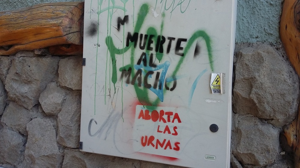 En propiedades aledañas también se registraron pintadas con el sello “muerte al macho” y “abortá las urnas”.