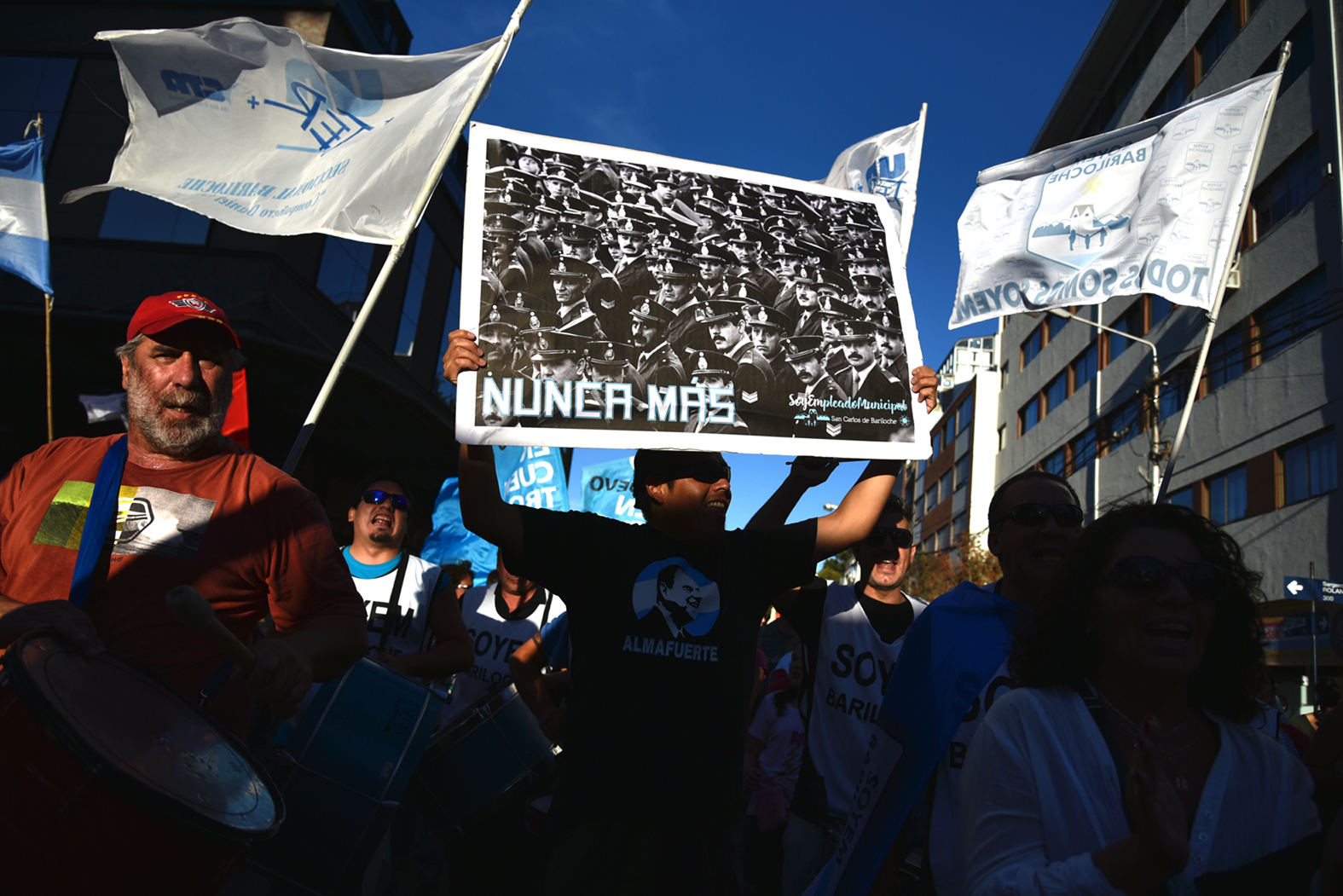 La consigna había sido clara. No repetir lo sucedido el año pasado y volver a unir a las organizaciones bajo el mismo lema: Nunca más. Más de 3.000 personas se movilizaron desde la esquina de Onelli y Brown portando una bandera que cubrió el ancho de la calle ratificando que los desparecidos fueron 30.000, y exigiendo Memoria, Verdad y Justicia a 41 años del último Golpe de Estado.