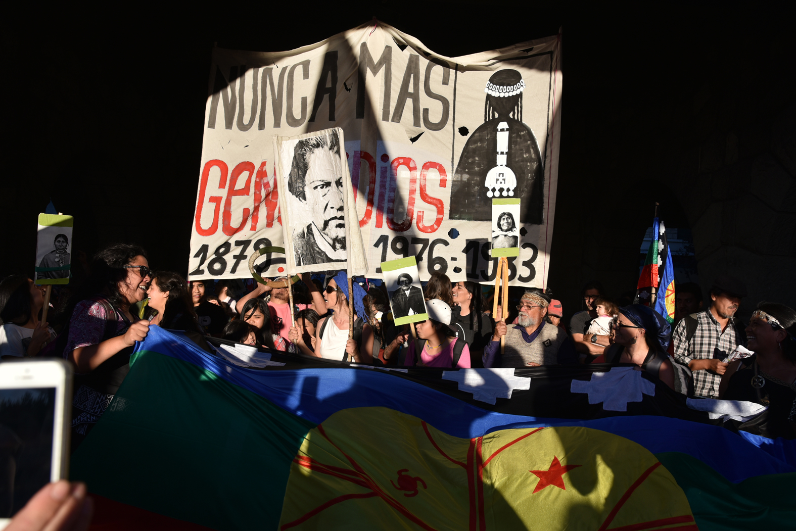 Ya en el escenario, el mensaje unificado comenzó siendo un racconto de los genocidios impulsados por el Estado Nacional contra el pueblo. Recordaron que durante la última dictadura unos 500 niños se criaron en cautiverio “y se los robaron”, y que durante los 70 “todos luchaban por un país justo y equitativo”.
