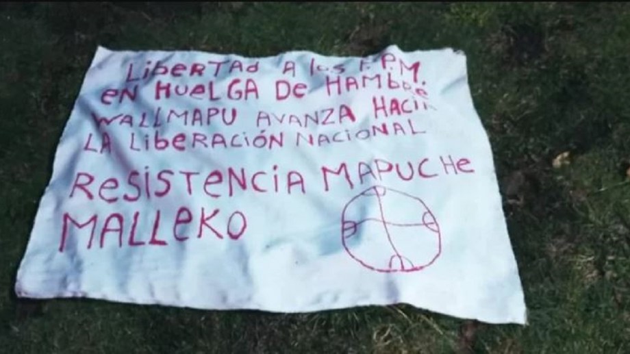 En la zona se encontró un lienzo con la firma de la organización mapuche y este mensaje: «Libertad a los P.P.M. en huelga de hambre, Wallmapu avanza hacia la liberación nacional».