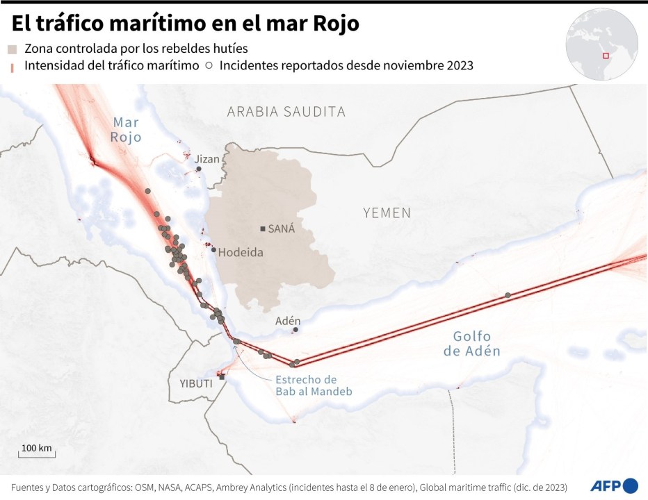 En respuesta, y con el argumento de garantizar la libertad de navegación en esta vía por la que transita un 12% del comercio mundial, Estados Unidos y Reino Unido bombardearon recientemente objetivos de los hutíes en Yemen.