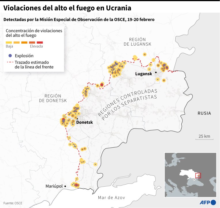 Las tensiones en el Este de Ucrania se arrastran desde la anexión rusa de Crimea en 2014. Grupos armados prorrusos buscan independizarse del país por el acercamiento del gobierno nacional a EE.UU. y Europa, en detrimento de Moscú.