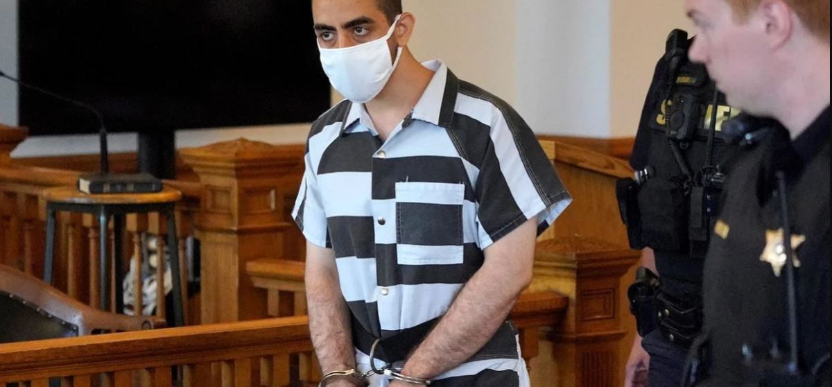 Hadi Matar, de 24 años, acusado de «intento de asesinato y agresión», compareció anoche con uniforme de preso a rayas blancas y negras, esposado y con mascarilla ante un juzgado de Chautauqua y no dijo ni una palabra, según el New York Times (NYT) y fotos de la prensa local, reportó la agencia de noticias AFP.