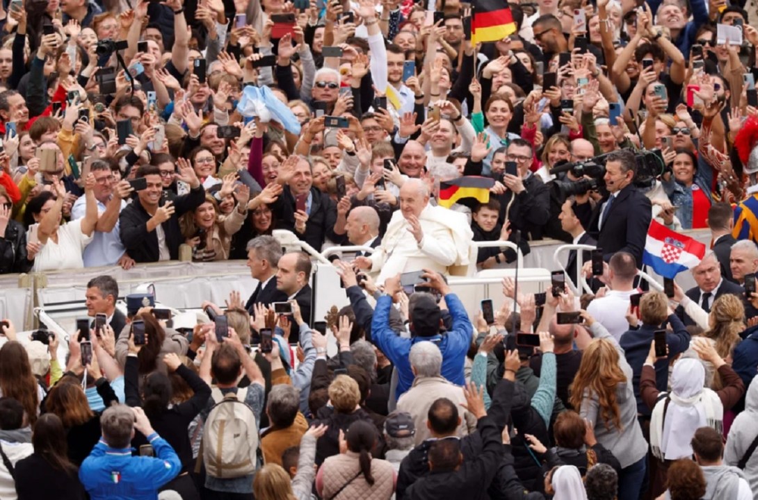 Unos minutos antes, Francisco saludó y bendijo a los cerca de 60.000 fieles presentes en la plaza de San Pedro a bordo de su «papamóvil» y entre gritos de júbilo.
