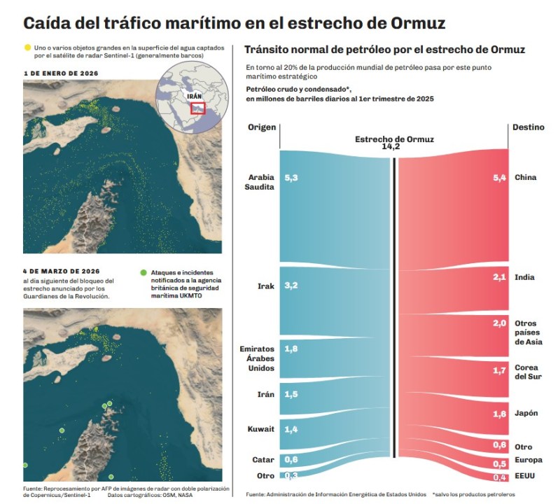 Por la guerra en Medio Oriente iniciada por el ataque conjunto entre Israel y Estados Unidos contra Irán, desde Teherán se bloqueó ese paso clave para el petróleo.