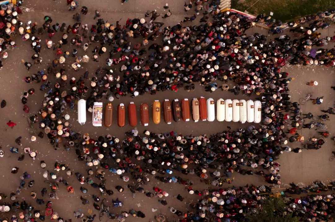 La violenta represión de las fuerzas del orden provocó el lunes 14 muertos entre los manifestantes que trataron de ocupar el aeropuerto de Juliaca, y tres fallecidos durante un saqueo en un centro comercial, de acuerdo con la Defensoría del Pueblo. Además, un policía pereció quemado al interior de su patrulla, informó la institución.