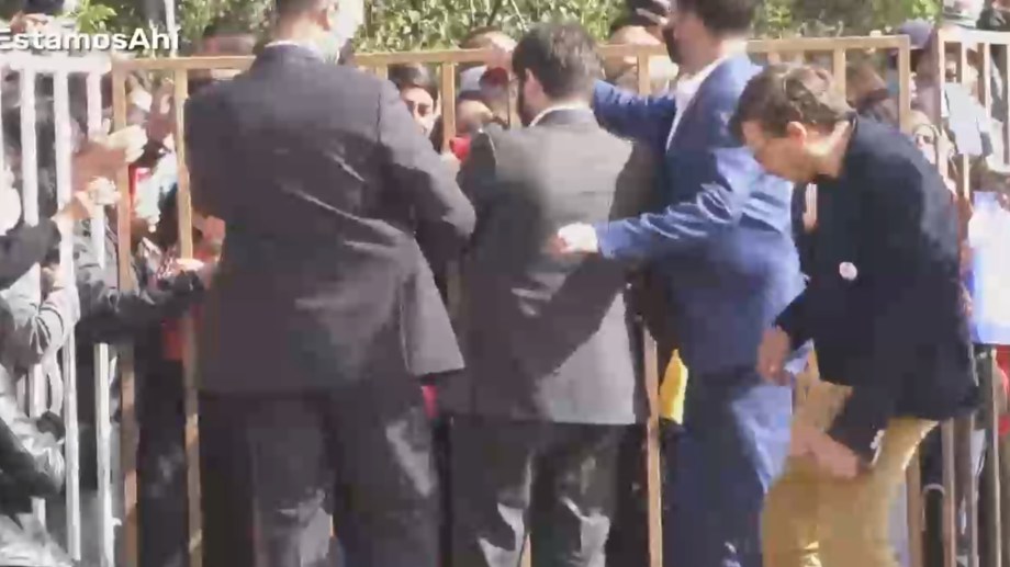 El proyectil finalmente impactó en el pecho del jefe de gabinete presidencial, Matías Meza-Lopehandía, y Boric se retiró rápidamente del lugar.