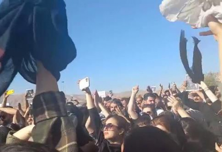 Un vídeo corto difundido por Fars muestra a una multitud de decenas de manifestantes, especialmente mujeres, sin pañuelo en la cabeza gritando «muerte a la República Islámica».