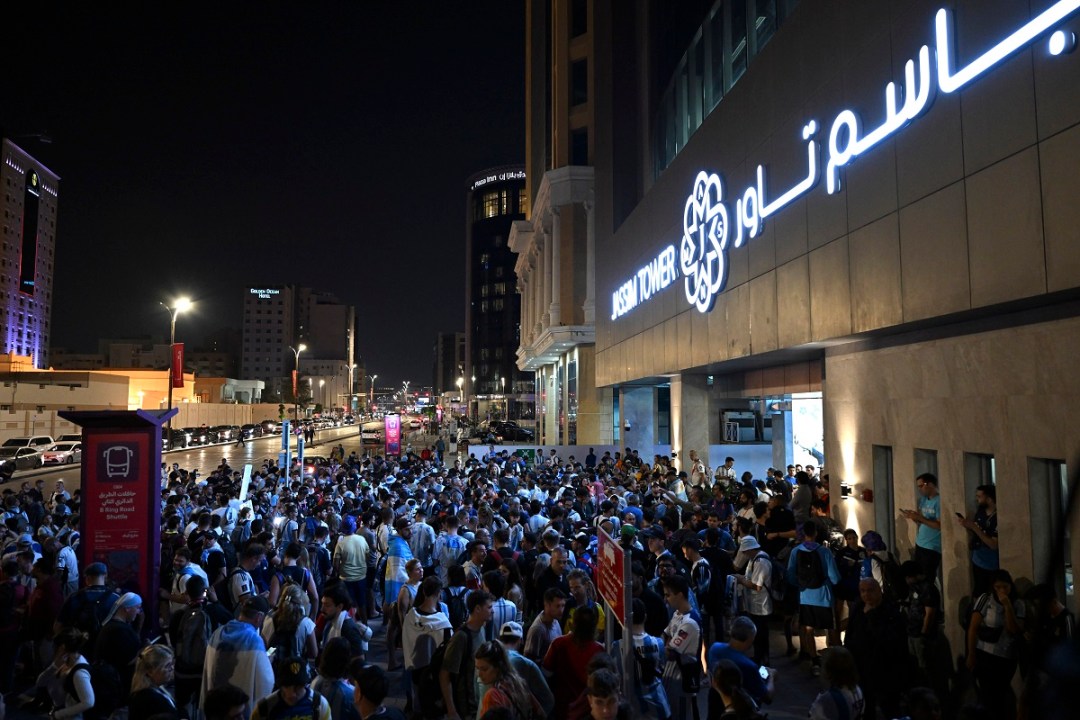 Los hinchas se autoconvocaron en el lugar desde las 19:30 hora local (13:30 de Argentina) para que la dirigencia resuelva la situación de más de 1.000 argentinos que no disponen localidades para asistir a la gran definición del domingo con Francia en el Estadio Lusail, cuya capacidad es de 88.966.