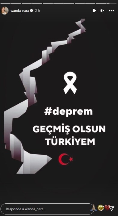 A través de su cuenta oficial de Instagram, Icardi publicó una imagen de un listón negro y una leyenda en turco «geçmiş olsun» que en español significa «que te mejores pronto», junto a un corazón roto y unas manos rezando. Inmediatamente, cosechó más de 250 mil «me gusta» y otra tanta cantidad de comentarios.