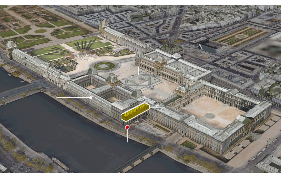 Según informó la agencia AFP y medios locales de Francia, el robo ocurrió entre las 9:30 y las 9:40, poco después de la apertura al público. Los asaltantes aprovecharon las obras de refacción en la fachada del edificio que da al río Sena para utilizar un brazo articulado o una plataforma elevadora y acceder directamente al primer piso, donde se encuentra la Galería de Apolo.