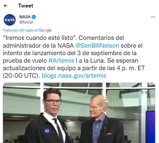 Así lo confirmó la NASA a través de su cuenta de la red social twitter: «La misión ha sido pospuesta. Los equipos intentaron solucionar un problema relacionado con una fuga en el hardware que transfiere el combustible al cohete, pero no tuvieron éxito».