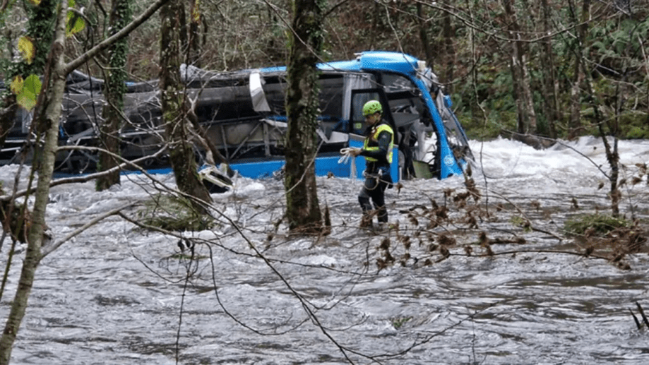 Tragedia navideña en Galicia: murieron cinco personas al caer un micro a un río
