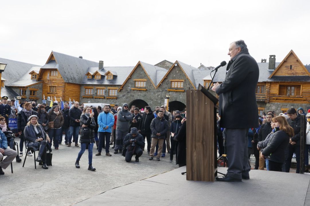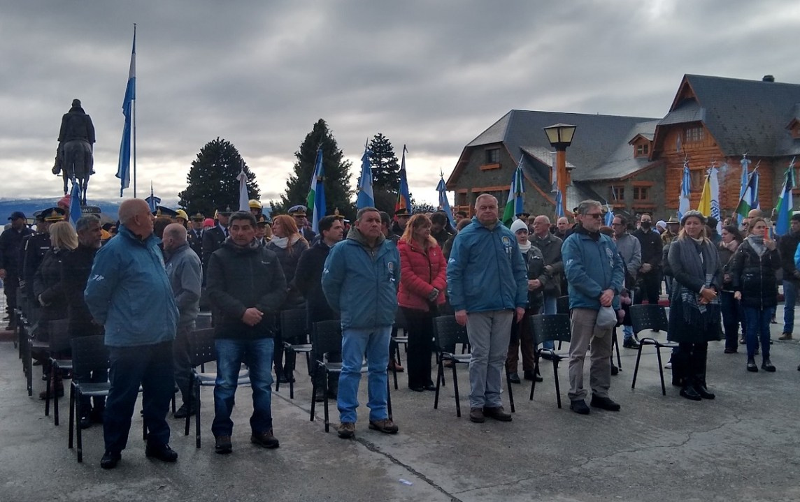 Gennuso encabezó el acto oficial en el Centro Cívico en una fría mañana, con temperaturas bajo cero, junto a funcionarios municipales, la senadora Silvina García Larraburu, la legisladora María Eugenia Martini, la banda de la escuela Militar de Montaña, abanderados de escuelas de la ciudad, grupos de danza y el ballet Tolkeyén.