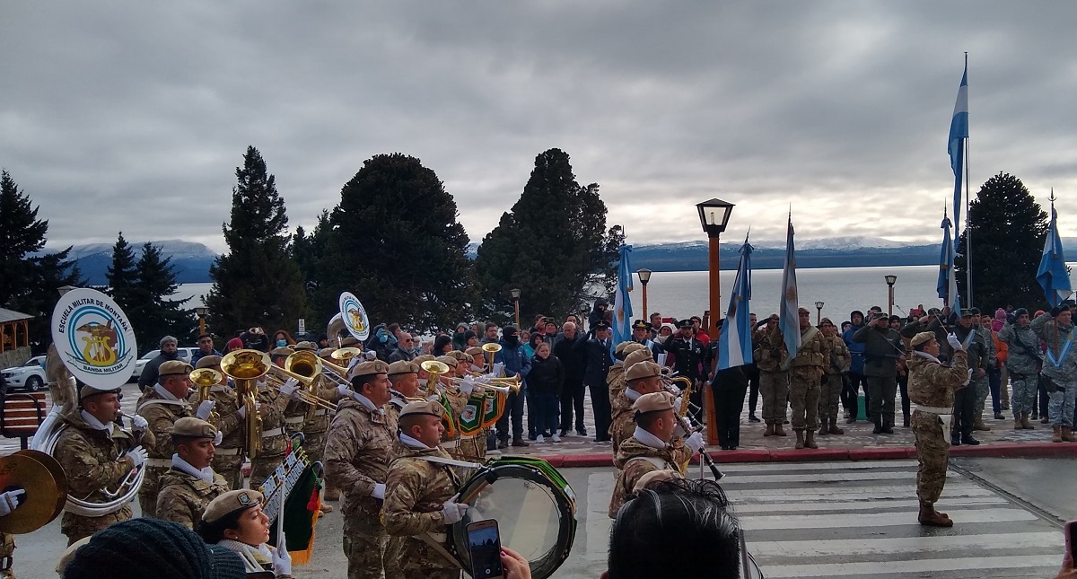 La banda de la escuela Militar de Montaña interpretó el himno nacional y el rionegrino, en el acto del 25 de Mayo.