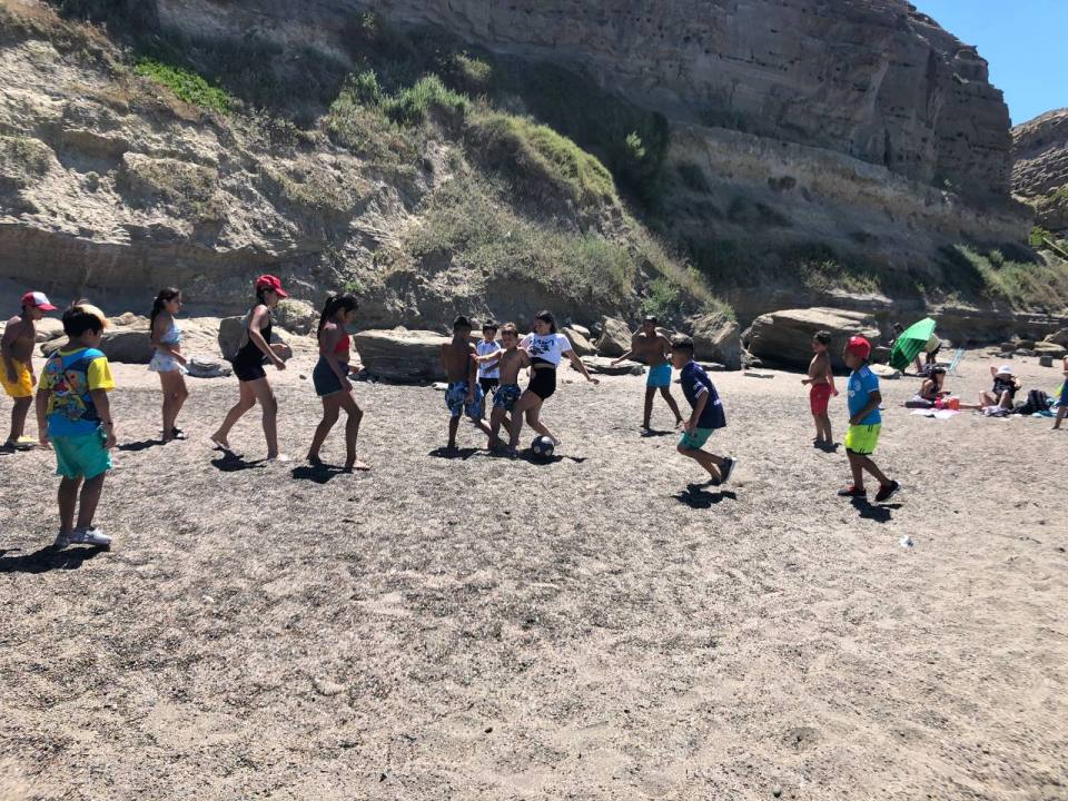 Cerca de 300 niñas y niños visitaron el balneario La Lobería, ubicado a unos 30 kilómetros de El Cóndor, que participan en la Colonia de Verano de Viedma. Por la mañana partieron siete colectivos de línea gratuitos desde la capital rionegrina.