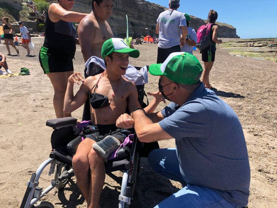 Sobre el mediodía, el intendente Pedro Pesatti se acercó hasta el balneario para compartir un momento junto a los profesores coordinadores de los distintos grupos y observar las actividades que realizaban niñas y niños que algunos visitaban por primera vez la playa ubicada a 60 kilómetros de Viedma.