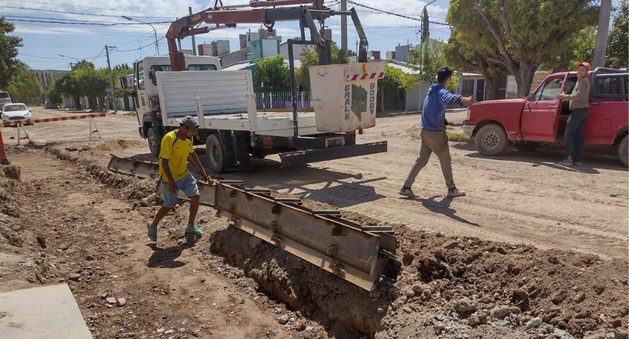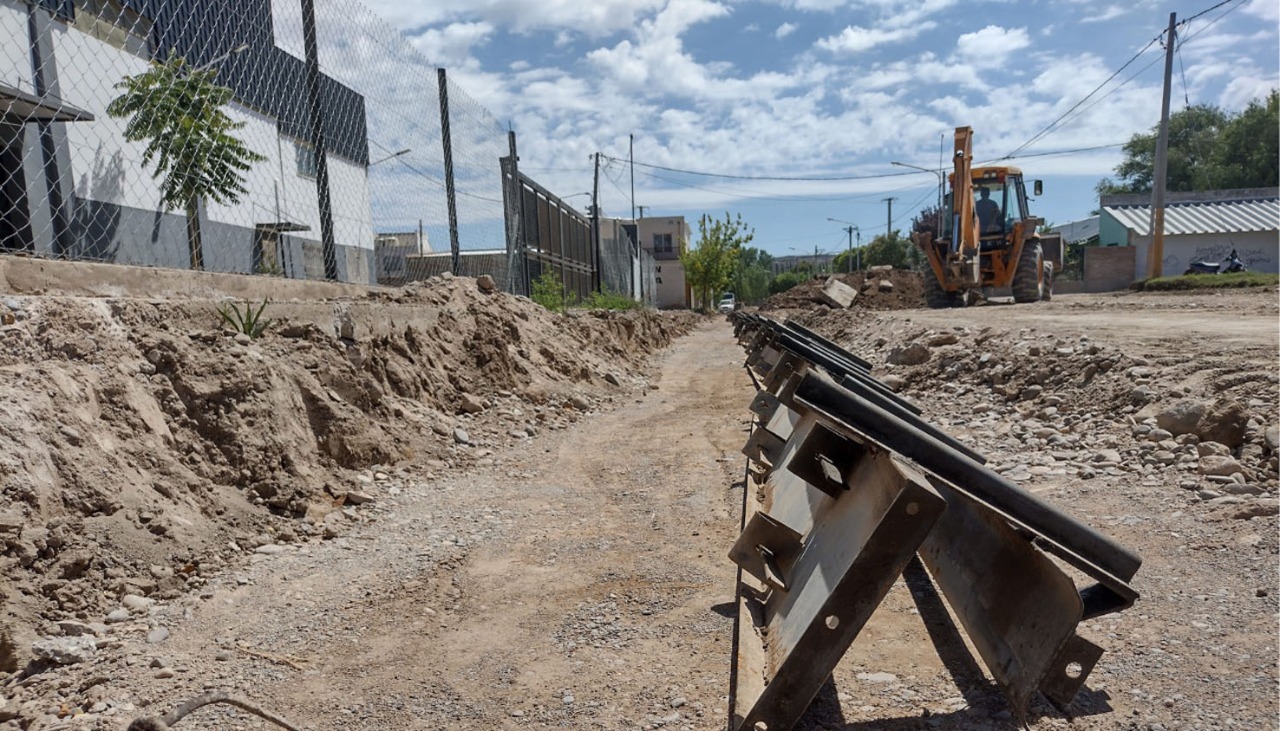 A través del área de la Dirección de Obras Públicas del municipio, los obreros comenzaron los trabajos con excavadoras para la remoción del terreno y la ejecución de badenes, los cuales permitirán un correcto drenaje del agua por la calle hacia el sur.