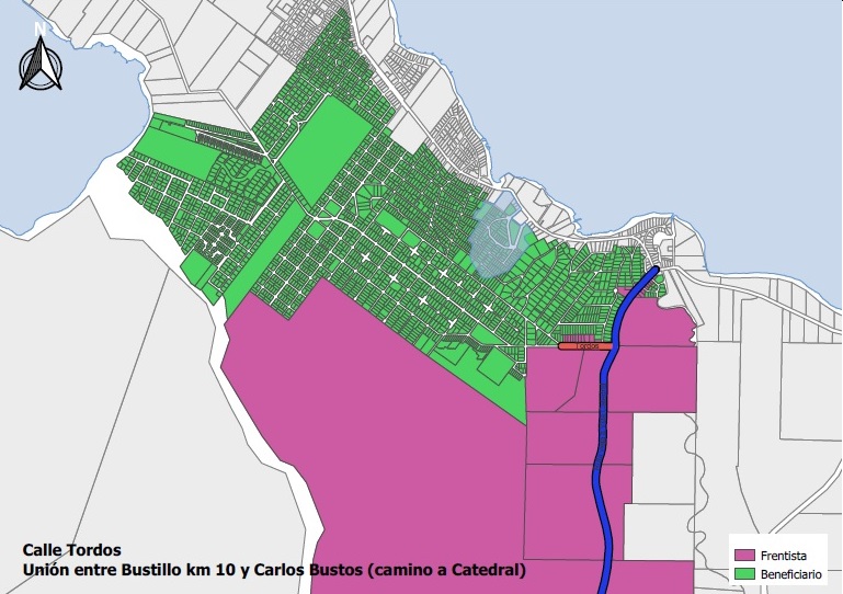 Gran parte de la traza atraviesa tierras fiscales que pertenecen al Ejército Argentino, pero se desconoce si abonarán la obra como contribuyentes. La única precisión es que se considera “beneficiarios” a quienes viven en 11 barrios del oeste, unas 2.000 familias aproximadamente, quienes exponen sus argumentos para oponerse, en busca de frenar este proyecto como lo logró esta semana el barrio Villa Los Coihues, donde el municipio ya dio marcha atrás.