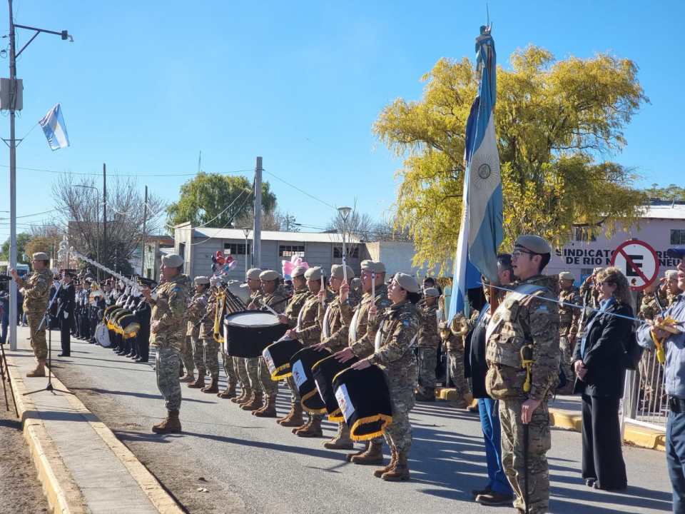 Por otro lado, el desfile patrio cuenta con cientos de instituciones de la ciudad. El punto central es la calle avenida Roca, entre Amilcar Regot y Eva Perón, en la Plaza de los Mástiles.