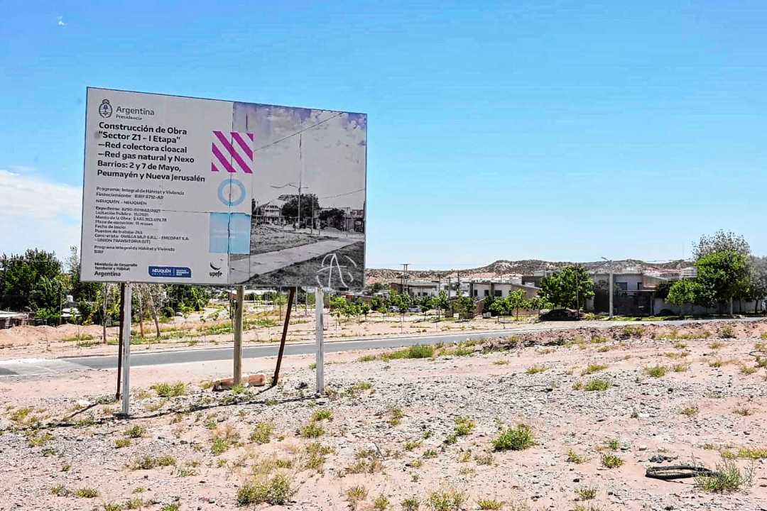 La obra de gas para 2 y 7 de mayo involucra un tendido de más de 21.000 metros en una zona de faldeo de barda y de trazado irregular de calles. Las cloacas para Peumayén y Jerusalén fueron contratadas en diciembre