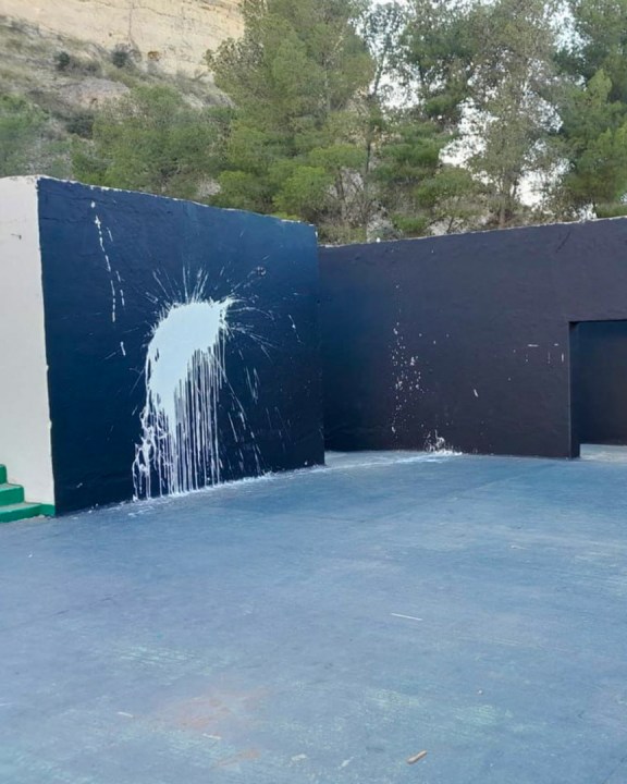 Desde el Ejecutivo comunicaron que las paredes del escenario fueron dañadas arrojando pintura sobre ellas dañando el arreglo que le habían hecho previamente. Además habrían encontrado inscripciones en otras paredes.