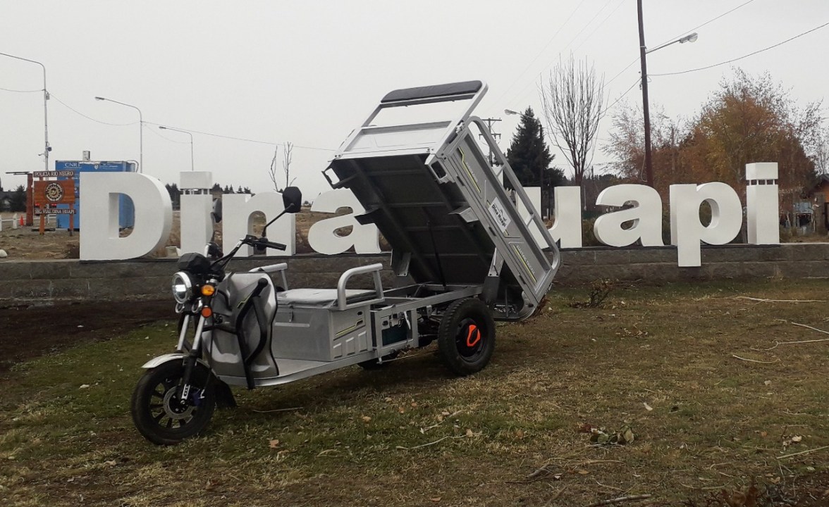 Se trata de rodados sin cabina, que se conducen como una moto. En realidad son triciclos, ya que detrás del conductor cuentan con una caja volcadora con barandas, adaptable para distintos usos. La Municipalidad de Dina Huapi pagó 934.000 pesos por esos triciclos eléctricos, informó la intendenta Mónica Balseiro.