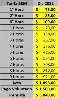 Según indicó Oscar Rodríguez, titular del Servicio de Estacionamiento Medido en Cipolletti, la primera hora pasará de $45 a $73 y la segunda de $52,50 a $85. De ahí en adelante el valor era de $67,50, pero en esta nueva actualización, el valor será de $109.