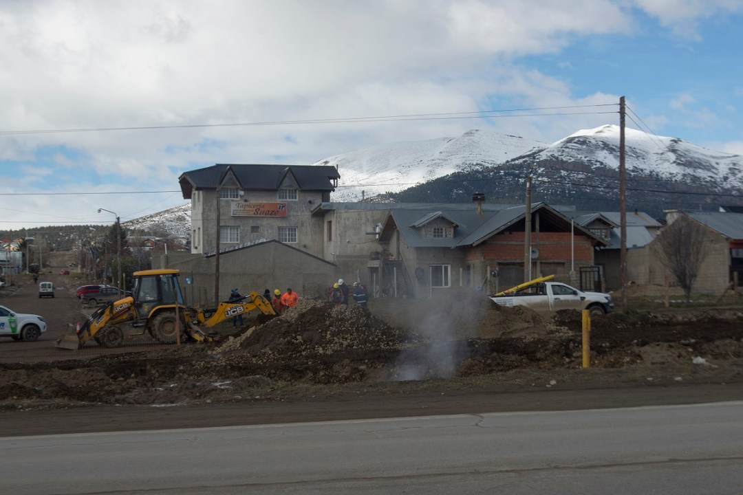 A pocos metros del sitio donde pasado el mediodía todavía brotaba el gas se encontraba la excavadora de la empresa Hidraco, que había producido la rotura. Según la información aportada por una coordinadora del “equipo de campo” del plan Promeba, la contratista pone especial cuidado en los trabajos de zanjeo y hasta ahora no había tenido problemas. Pero según dijo, esta vez “ocurrió que el caño de gas estaba más superficial y desplazado un metro y medio” de la ubicación indicada en los planos.