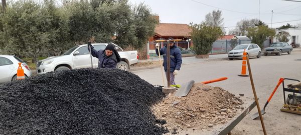 Desde el área de Obras Públicas del municipio local, indicaron recibieron material asfáltico para realizar los trabajos de bacheo de las calles pavimentadas y se puso en marcha del programa de mantenimiento de calles en forma conjunta con el repaso de las de ripio que se deterioraron a partir de las lluvias registradas en las últimas semanas en la región.