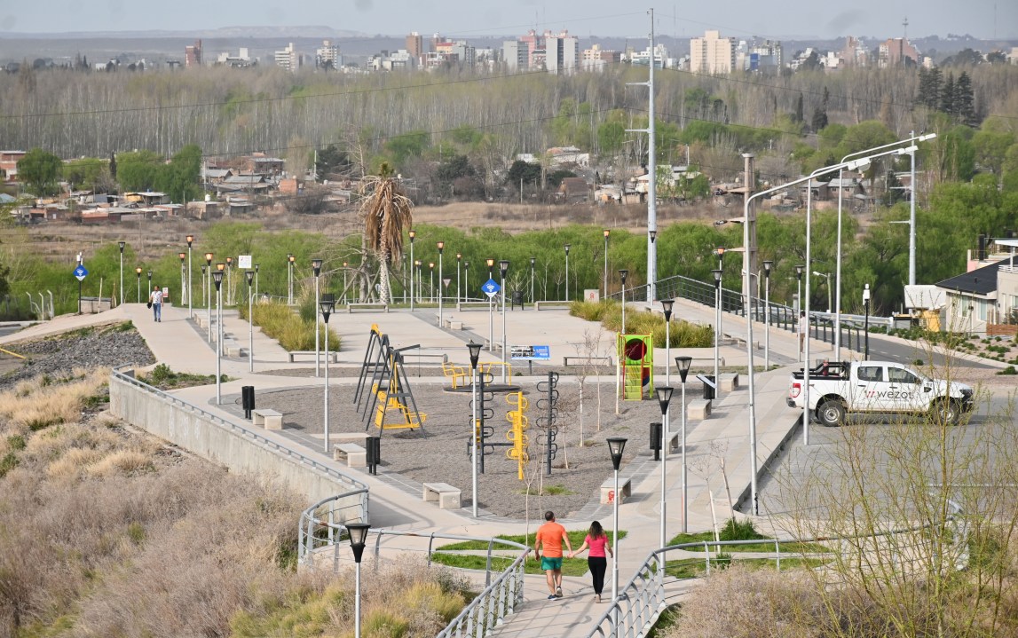 Otra obra transformadora pronta a cortar las cintas inaugurales es el Parque Las Bardas, que se extiende desde el borde de la meseta hasta la línea de urbanización de los distritos 2 (primera etapa), 6 y 7. Se constituye como otro atractivo turístico que la ciudadanía disfrutará rodeada de naturaleza autóctona. Contará con miradores y senderos, luminarias led, mobiliario urbano, pista de aprendizaje de patín y bicicletas, plaza aeróbica con equipamiento para actividades físicas y estación #SIBICI, juegos para niños con capacidades diferentes, espacios para actividades culturales al aire libre y hasta con un espacio cerrado para recreación de canes.