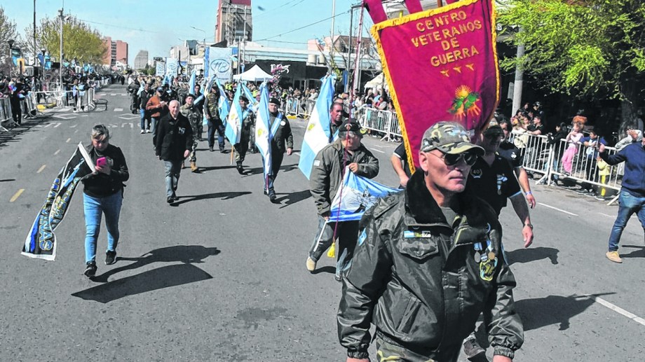 El desfile de las y los veteranos de Malvinas ocupó la primera hora del desfile aniversario de la ciudad de Neuquén, que se realizó ayer a la vera del Parque Central, con un palco preparado en Mitre y Río Negro.