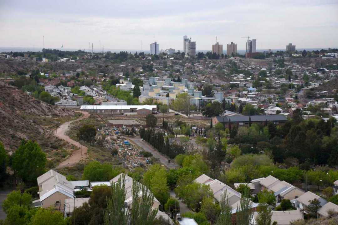 Las viejas tomas que ahora son barrios y se mimetizan con planes de viviendas se ven también desde esta primera meseta, y los nuevos barrios que crecieron robándole espacio a los cañadones y al faldeo.