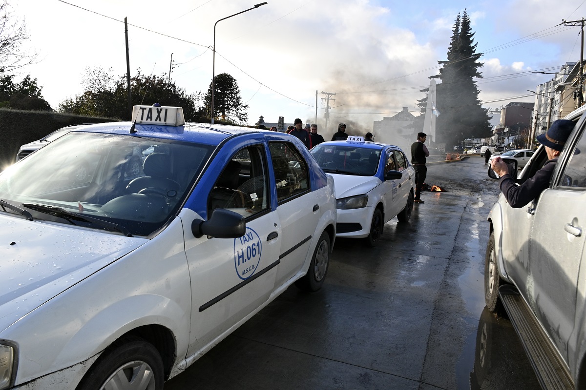A las 10 un grupo de taxis y remises se posicionaron en la avenida Bustillo frente al sanatorio San Carlos, a la altura del Kilómetro 1, donde también bloquean el tránsito.