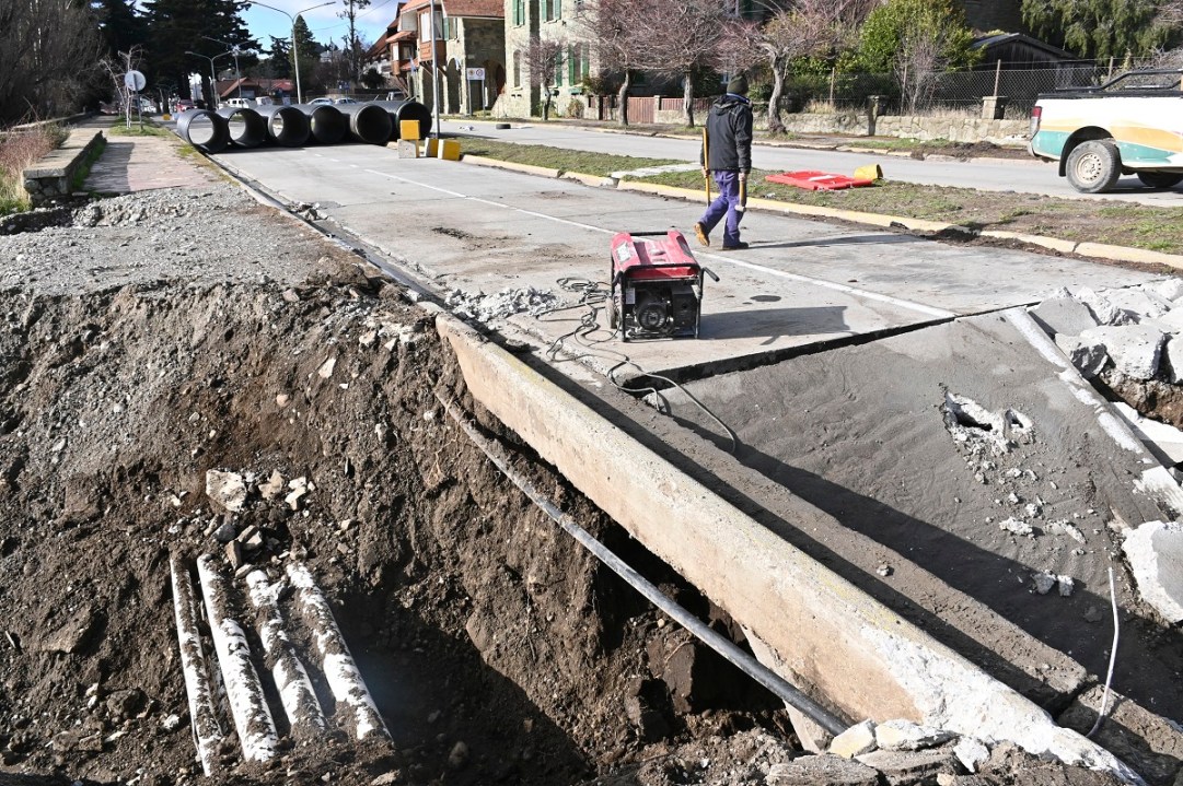 La reconstrucción del desagüe pluvial que se salió de cauce, provocó desmoronamientos del terreno y obligó a cortar la avenida Costanera de Bariloche, en el cruce con la calle Ruiz Moreno, demandará unos 15 días de trabajo en plena temporada invernal. El primer paso fue romper el asfalto en la zona donde se deben realizar las tareas y se desvía el tránsito.