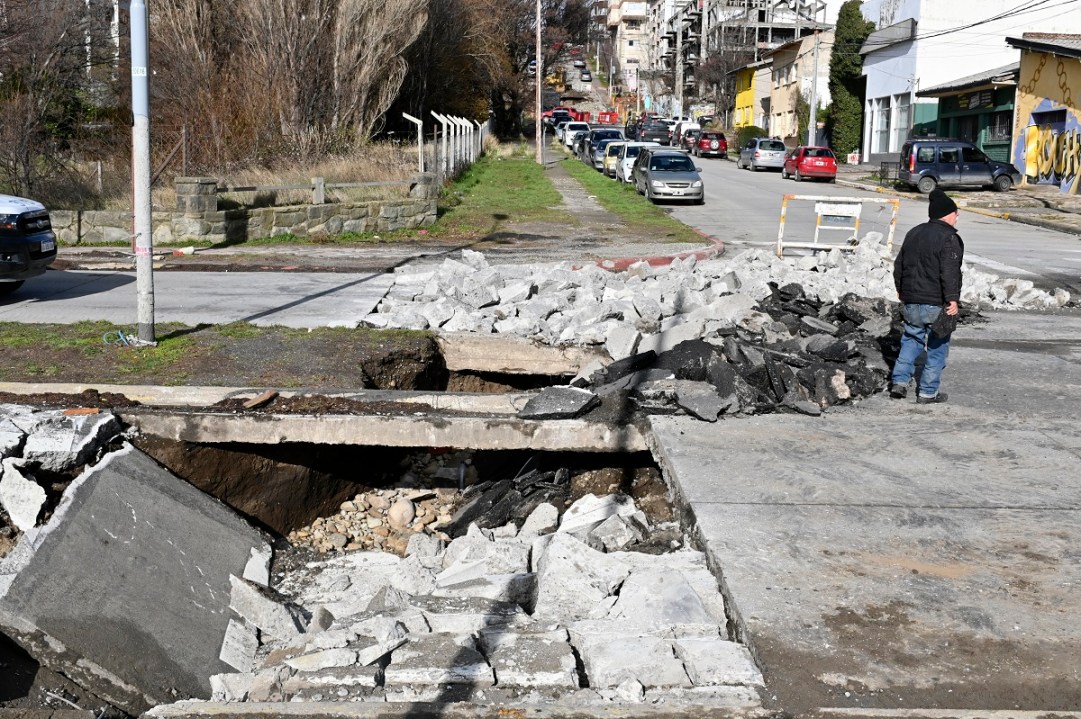 Grün recordó que la Costanera barilochense fue responsabilidad de Vialidad Nacional hasta hace unos 40 años, cuando fue transferida a la provincia, pero el pluvial es una obra del municipio. Dijo que originalmente el agua corría a cielo abierto “y luego se canalizó por debajo de la calle con caños metálicos, “que con los años se pudren y dejan escapar el agua”, con lo cual “termina por ceder el terreno”.
