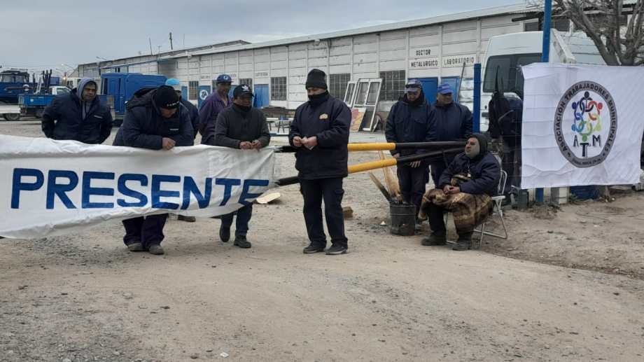 Uno de los gremios que representa a trabajadores municipales de Roca mantiene desde esta mañana una protesta en el obrador del Parque Industrial, en reclamo de indumentaria y la recategorización de varios agentes.