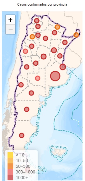 Hoy se registraron en la provincia de Buenos Aires 4.544 casos; en la Ciudad de Buenos Aires, 787; en Catamarca, 3; en Chaco, 65; en Chubut, 181; en Córdoba, 1.475; en Corrientes, 22; Entre Ríos, 103; en Jujuy, 109; en La Pampa, 25; en La Rioja, 69; en Mendoza, 649; en Neuquén, 288; en Río Negro, 213; en Salta, 234; en San Juan, 72; en San Luis, 100; Santa Cruz, 129; en Santa Fe, 1.575; en Santiago del Estero, 124; en Tierra del Fuego, 158; y en Tucumán 889.