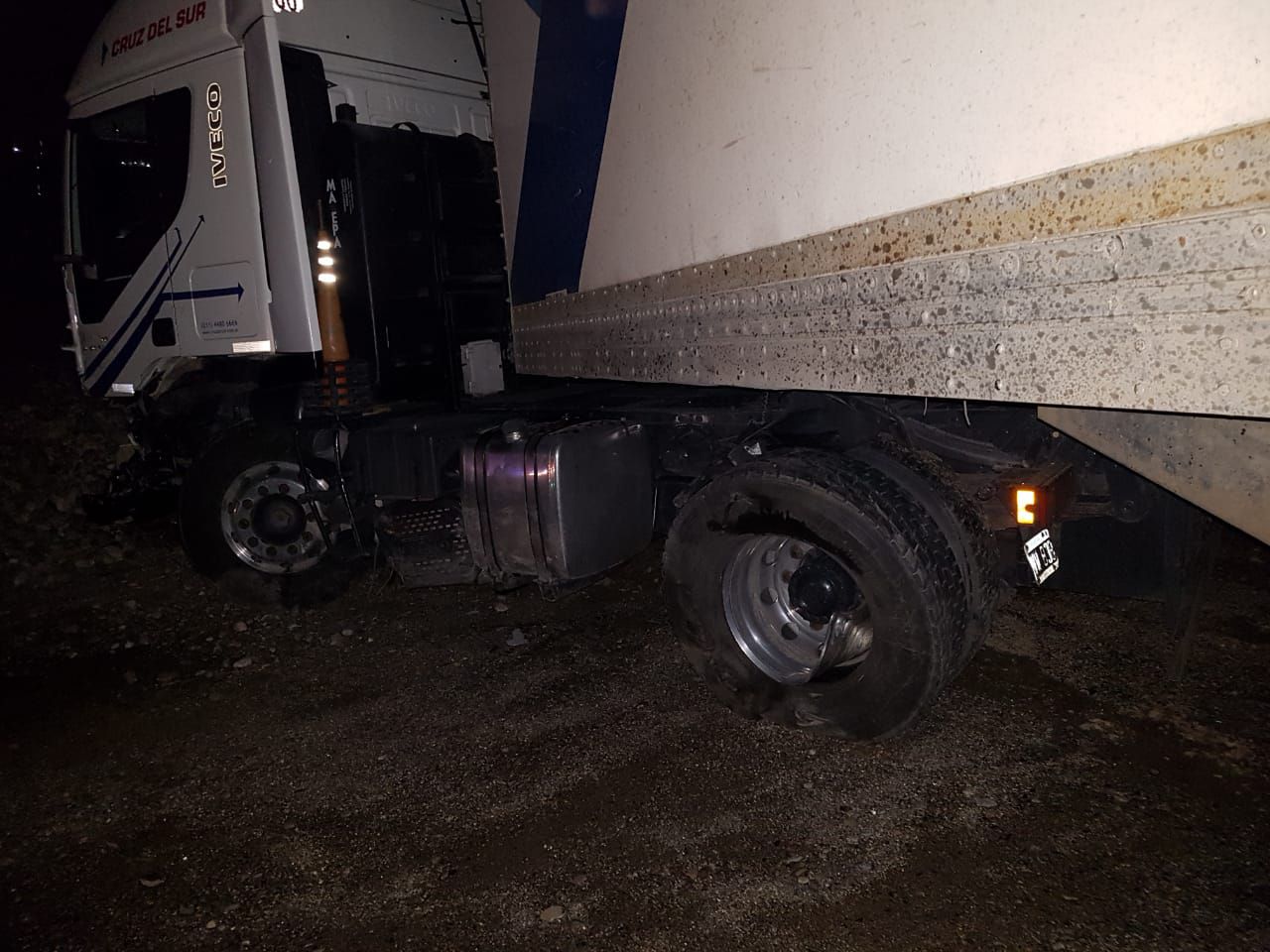 El auto chocó contra una de las ruedas del camión, sobre su lateral izquierdo. El rodado mayor quedó atravesado sobre la ruta a causa del impacto.